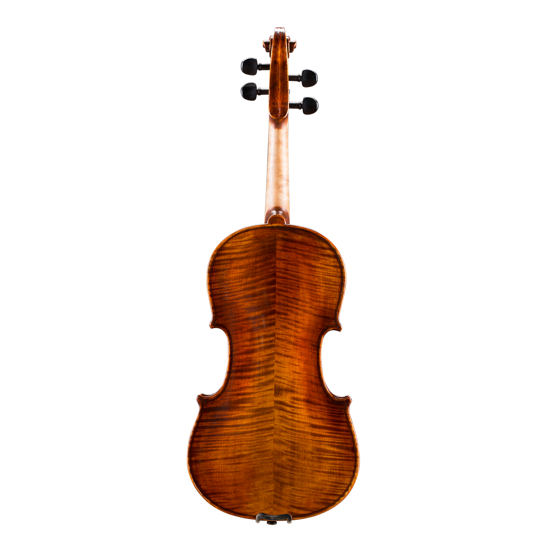 This instrument has a Level II Professional Setup which includes a hand-cut hand-fitted and adjusted soundpost high-quality Aubert #7 bridge hand-fit and lubricated pegs in matching material to other fittings finely finished nut fine planed and dressed fingerboard properly adjusted tailgut and Dominant strings.